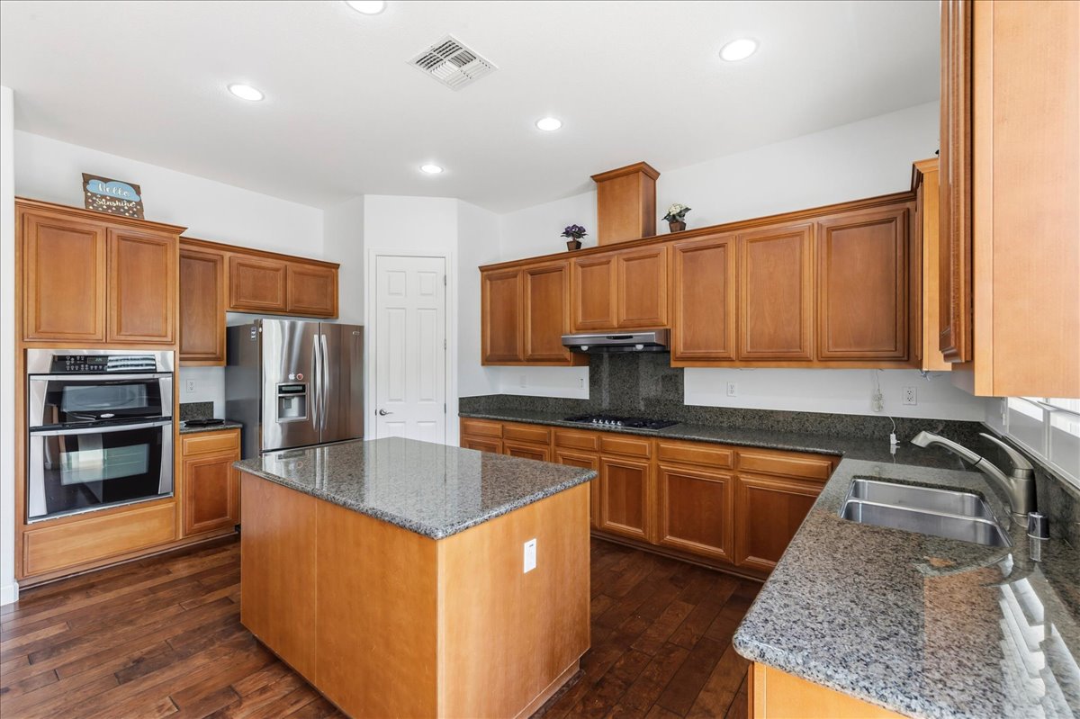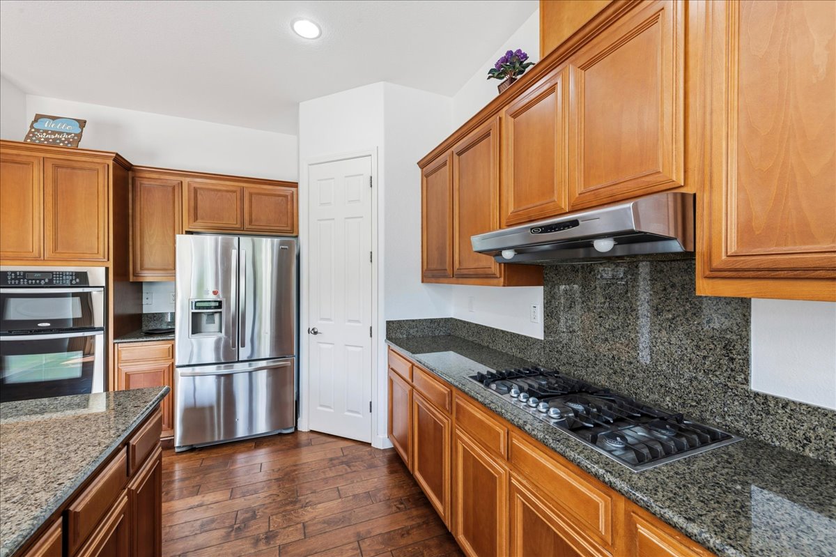 - Kitchen: Breakfast Bar, Breakfast Nook, Stone Counters, Dishwasher, Gas Range/Cooktop, Kitchen Island, Microwave, Oven Built-in, Pantry, Refrigerator